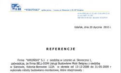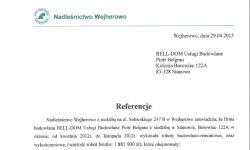 "Uznajemy firmę BELL-DOM Usługi Budowlane Piotr Belgrau za solidną, wiarygodną i w pełni przygotowaną do kompleksowego wykonywania zadań inwestycyjnych "pod klucz". Doświadczona kadra oraz potencjał techniczny i organizacyjny gwarantują wysoki poziom wykonania usług."